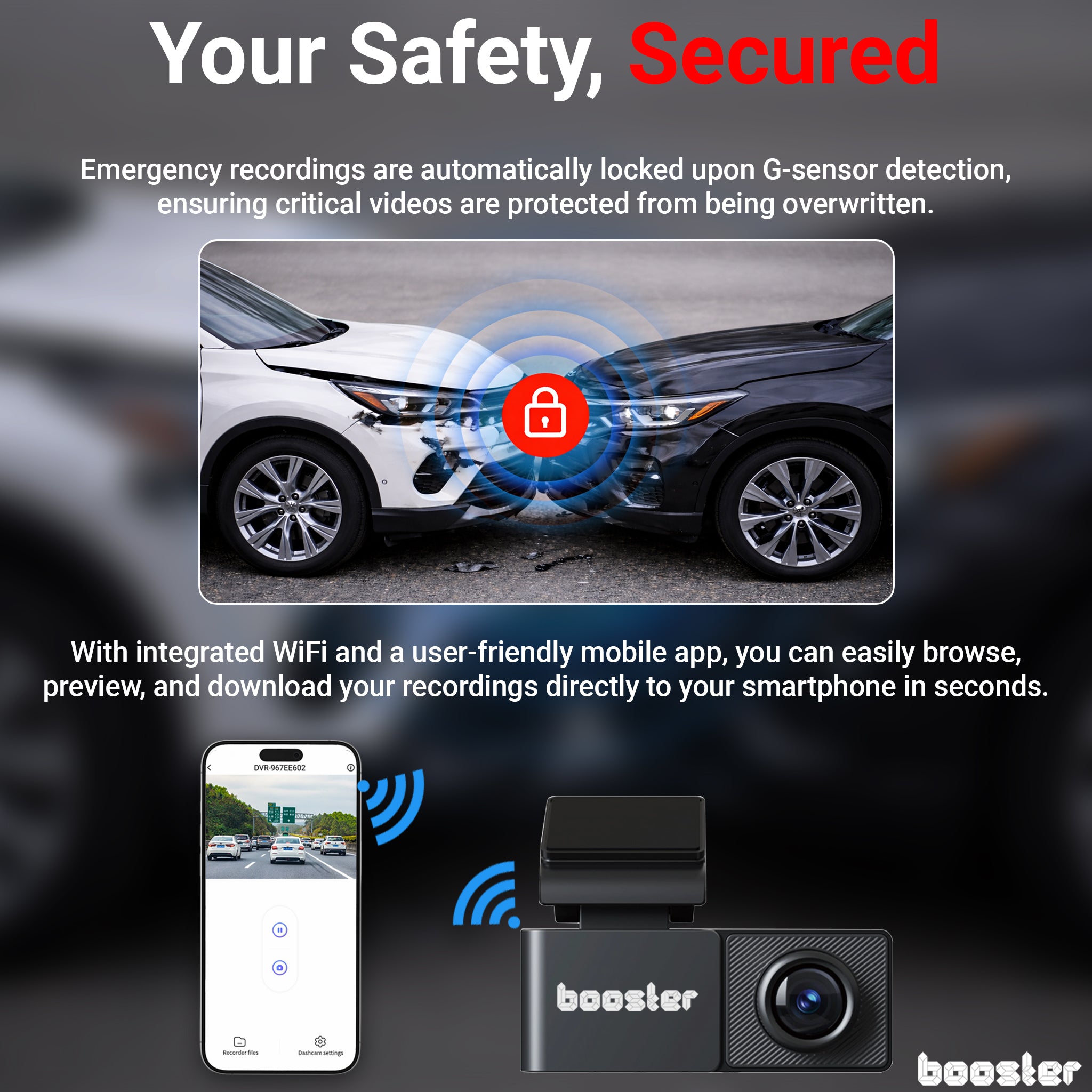 Booster SafeDrive Ultra blochează automat înregistrările importante prin G-Sensor, astfel încât momentele critice să nu fie șterse.