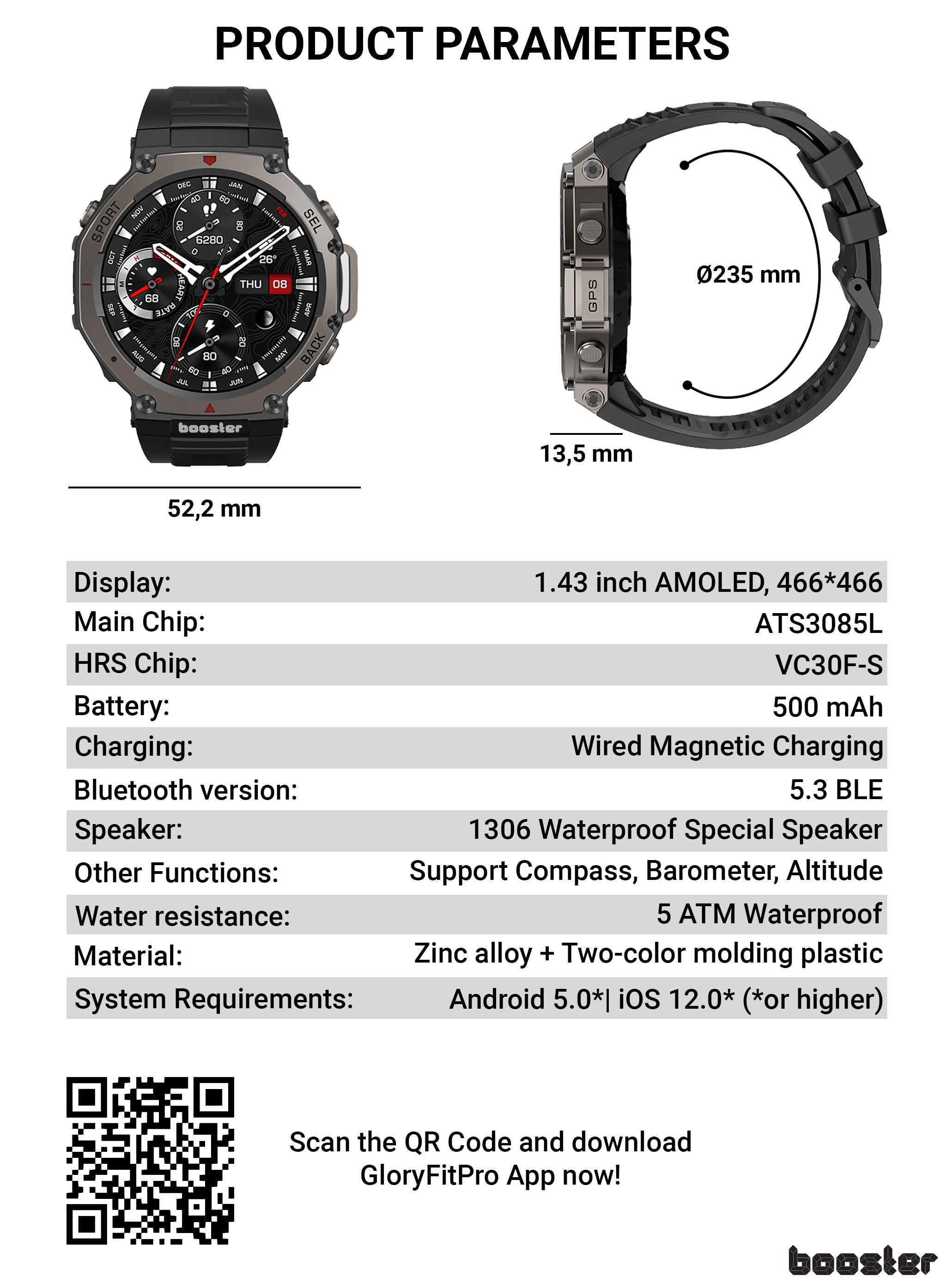 Pregătit pentru orice provocare, Booster Military este construit după standarde militare pentru a rezista în cele mai dure condiții. Fie că explorezi munții, alergi prin ploaie sau cucerești sala de sport, acest ceas este aliatul tău de încredere.