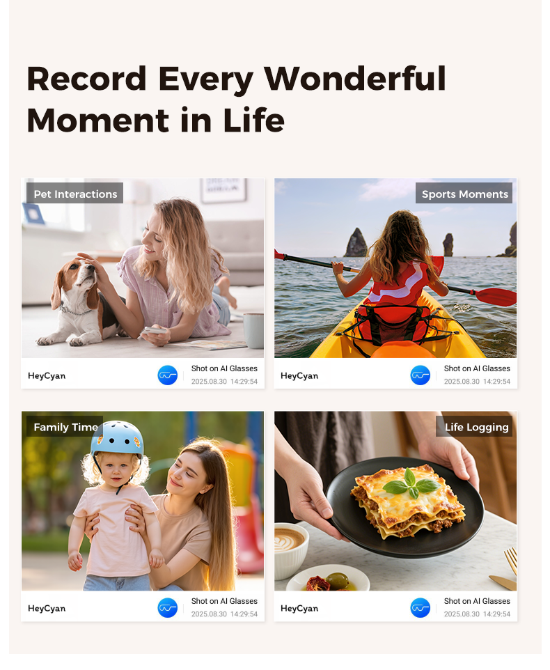 Spui „HeyCyan” și ochelarii înregistrează, fotografiază, traduc sau caută informații. Microfoanele duale cu noise-canceling asigură sunet clar în orice mediu.