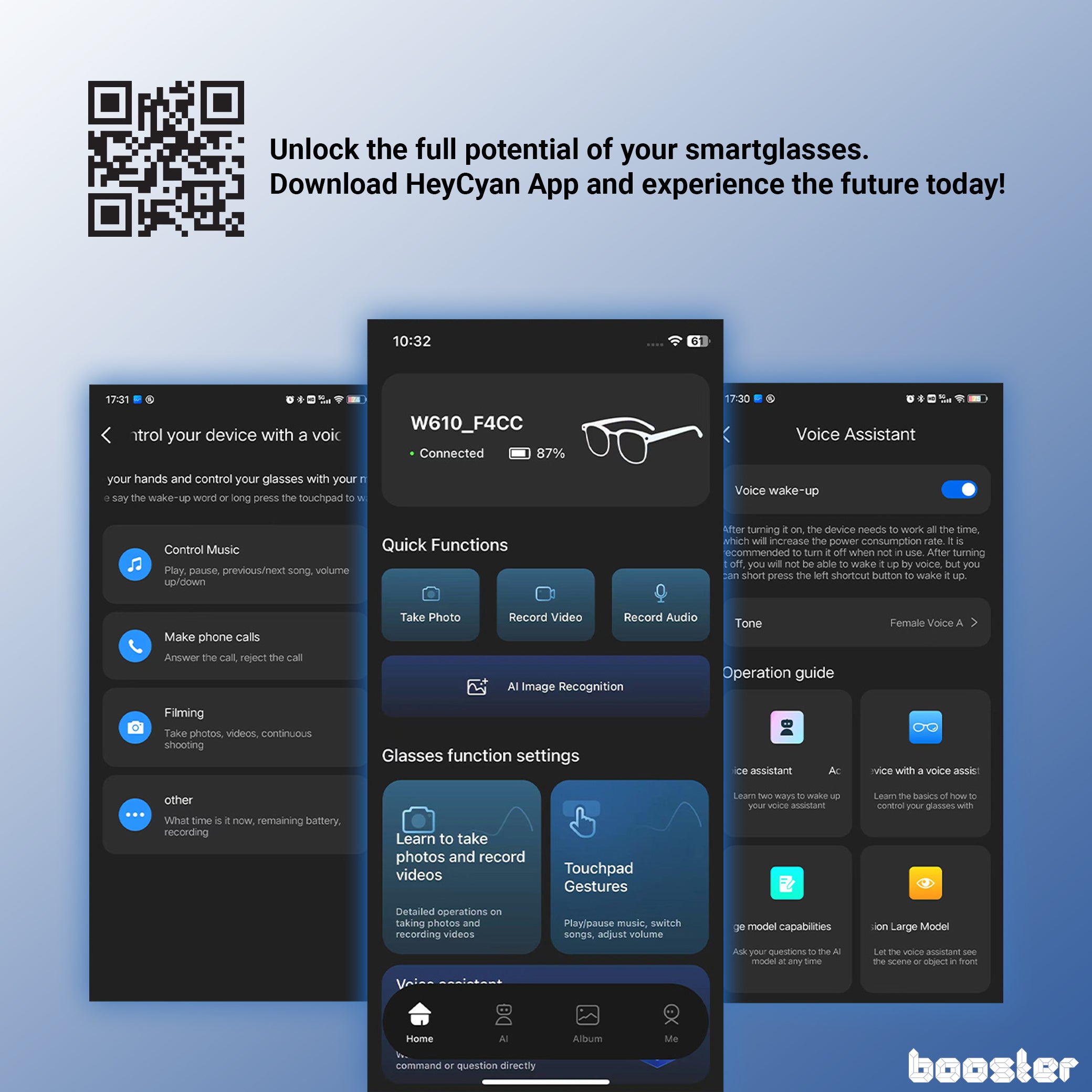 Booster Vision Pro™ este complet compatibil cu aplicația HeyCyan, disponibilă pentru descărcare atât pe Android cât și pe iOS.