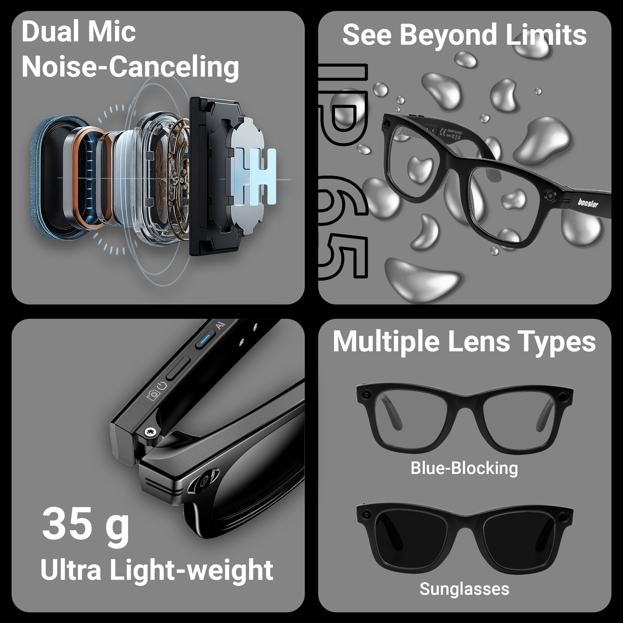 Cu certificare IP65, Booster Vision Pro™ rezistă la praf și stropi de apă. Ii porți în ploaie, la sport sau în oraș—fără griji, doar funcționalitate impecabilă.