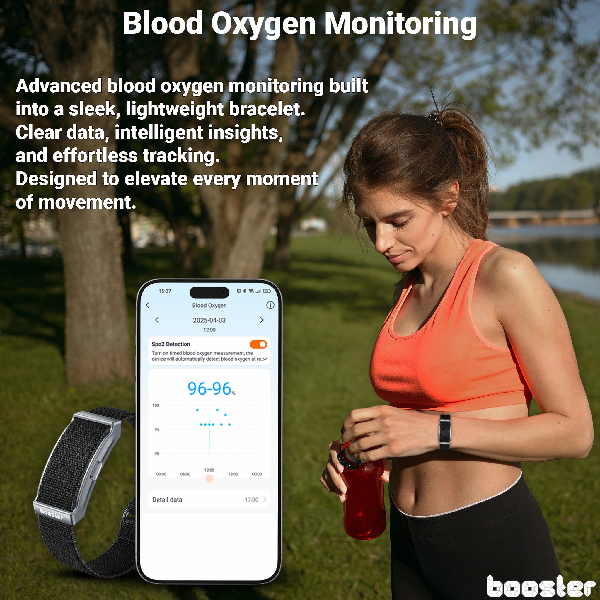 Brățara Booster monitorizează în timp real nivelul de oxigen din sânge și te avertizează automat când acesta scade sub limita optimă. În plus, analizează calitatea somnului pentru un stil de viață echilibrat și sănătos. Totul, fără ecran — doar confort și tehnologie de ultimă generație.