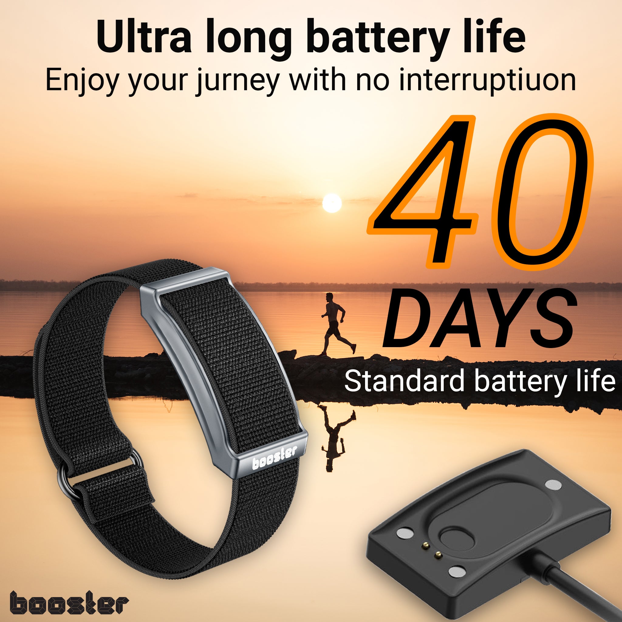 Cu o durată de viață a bateriei de până la 40 de zile, fără ecrane și fără vibrații, Booster Bracelet vă permite să vă concentrați asupra prezentului. De la un antrenament la o noapte în oraș - sunteți liber să uitați că este pornit. Până când începeți să primiți complimente.