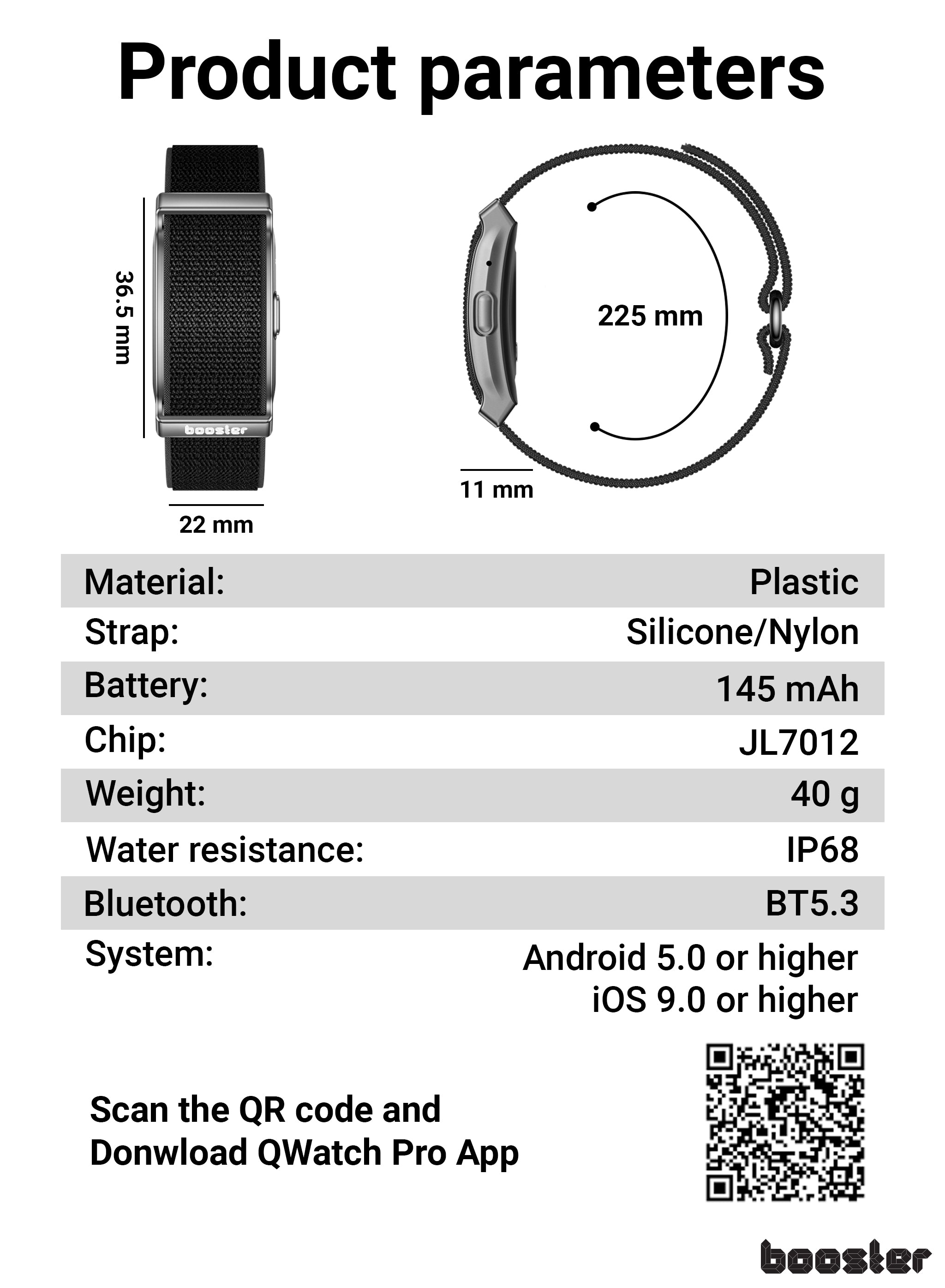 Brățara inteligentă Booster redefinește confortul: doar 40g, design fără ecran cu corp unitar pentru o purtare discretă și elegantă. Monitorizează sănătatea non-stop, cu precizie profesională a ritmului cardiac și o aplicație gratuită pentru control complet. Ideală pentru somn, stres și stil de viață activ.